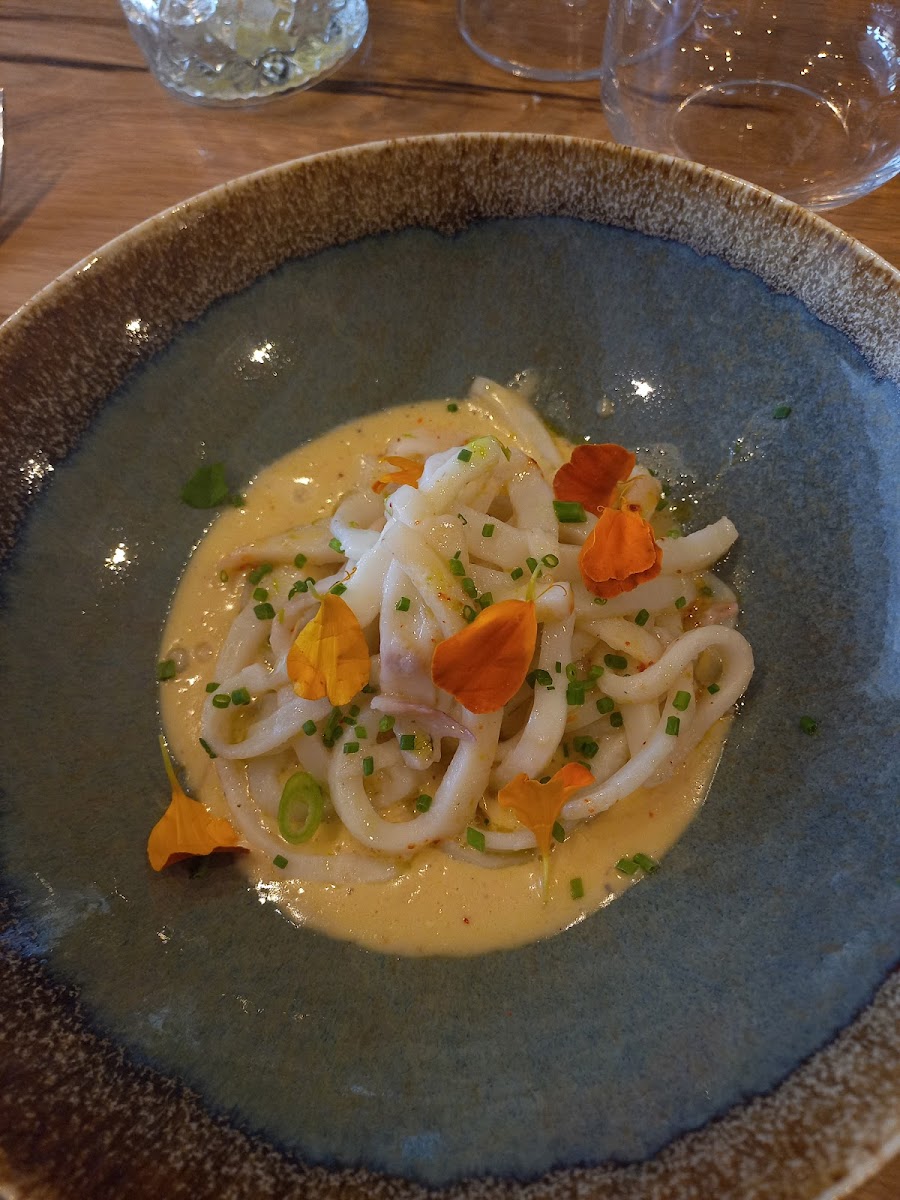 The moment you step inside, you'll be enveloped by a cozy and inviting atmosphere. The spacious dining room boasts a beautiful, carefully curated decor that reflects the region's charm. A friendly team, led by the delightful young couple Lisa & Romain, along with their eager staff member Enzo, welcomes every guest with smiles and genuine enthusiasm.